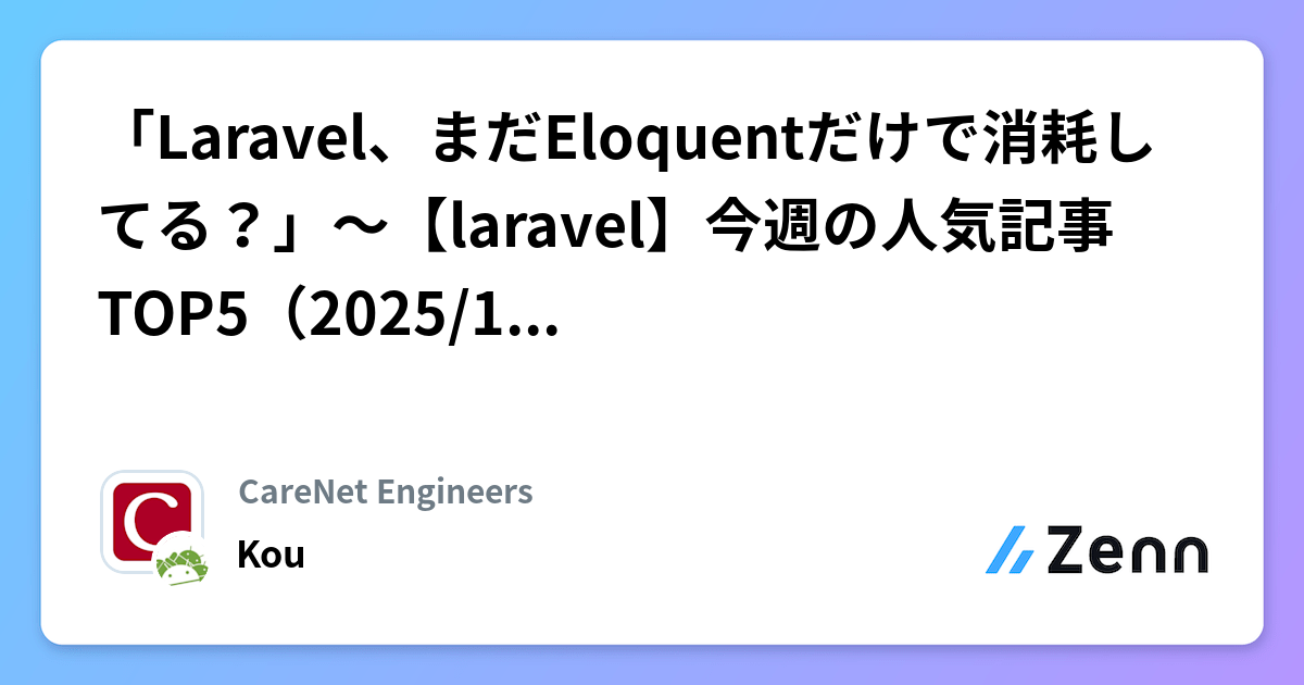 「Laravel、まだEloquentだけで消耗してる?」~【laravel】今週の人気記事TOP5(2025/10/12) | CareNet Engineersのフィード
