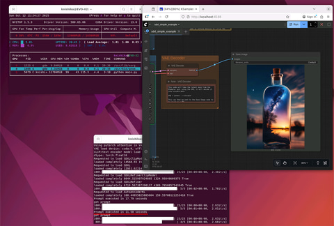 仕上げはComfyUI。関連モジュールやモデルをインストールして無事起動した。こちらは毎度やっていることもあり手慣れたものだ(笑)。