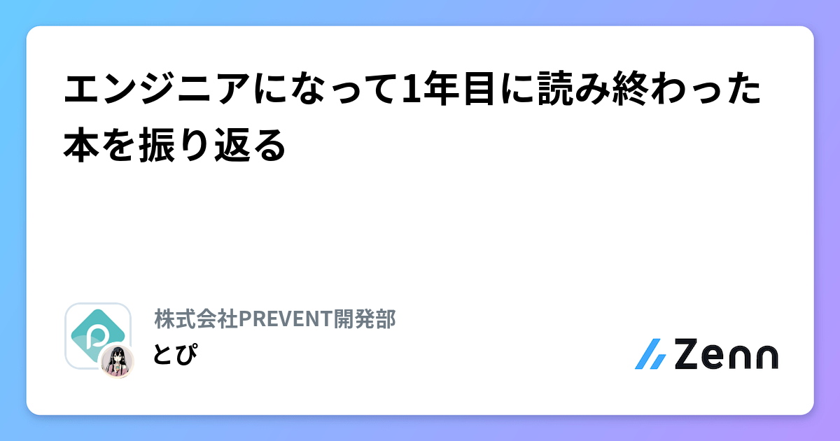 はじめに こんにちは!PREVENTで働いているバックエンドエンジニアのとぴ(@topi_log)と申します! 2024年10月にPREVENTにジョインしてから丸っと1年が経ちました。月日が経つのは早いですね。 良い区切りなので、この1年で読んだ本を振り返りながらまとめました。 読み終わった本たち ざっくりグループ分けしてみまし…