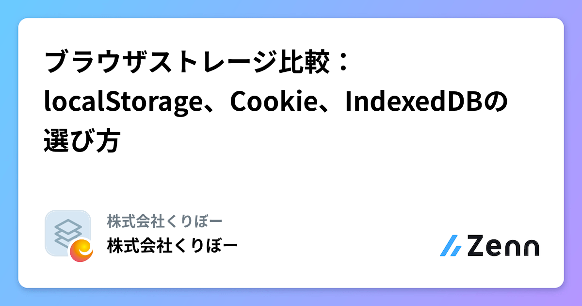 ブラウザストレージ比較:localStorage、Cookie、IndexedDBの選び方