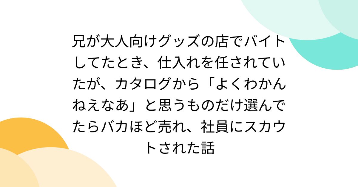 兄が大人向けグッズの店でバイトしてたとき、仕入れを任されていたが、カタログから「よくわかんねえなあ」と思うものだけ選んでたらバカほど売れ、社員にスカウトされた話
