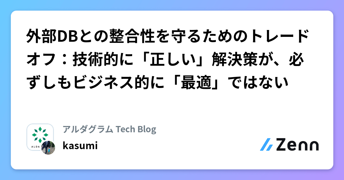 外部DBとの整合性を守るためのトレードオフ:技術的に「正しい」解決策が、必ずしもビジネス的に「最適」ではない | アルダグラム Tech Blogのフィード
