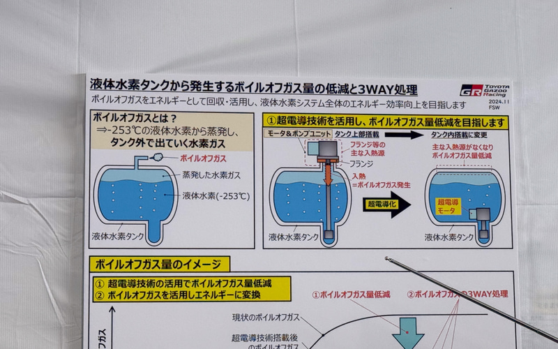 その際には、「みなさんもいろいろ期待されていた、大きなアイテムも」と言い、超伝導技術を液体水素カローラへ導入することを示唆した。