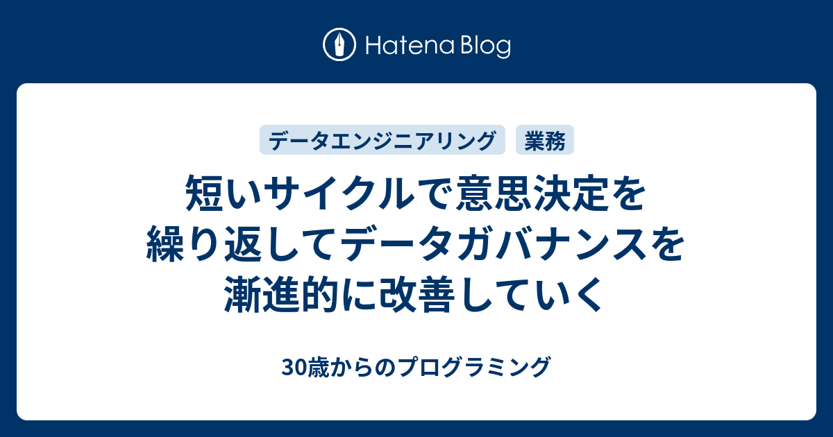 短いサイクルで意思決定を繰り返してデータガバナンスを漸進的に改善していく | HERP TechHub 2025.10.13 Uncategorized 記事のタイトルとURLをコピーする 自分の現在の主業務はデータプラットフォームの構築や運用だが、その文脈でここ数ヶ月取り組んでいたことのひとつに、データガバナンスがある。データを利活用したい人がより安全かつ便利に利活用できるようにして Source link Post Share Hatena LINE RSS feedly Pin it note Thoughts on Remix 3 / frantic.im 前の記事 Decathlon/dblinter: A static analysis tool for postgresql databases 次の記事 関連記事 Uncategorized Playwright Agents によるテストの自動生成を試してみた 2025.10.12 Uncategorized 伝説級Webブラウザー「Sleipnir Mobile」iOS版が11年ぶりの大規模アップデート – 窓の杜 2025.10.15 Uncategorized 就職面接のリモート課題にマルウェアが含まれておりハッキングされそうになった話 – GIGAZINE 2025.10.18 Uncategorized 転職の有休消化中に何していいかわからない 2025.09.11 コメント 0 コメント 0 トラックバック この記事へのコメントはありません。 トラックバックURL この記事へのトラックバックはありません。 返信をキャンセルする。 名前(例:山田 太郎)( 必須 ) E-MAIL( 必須 ) - 公開されません - URL