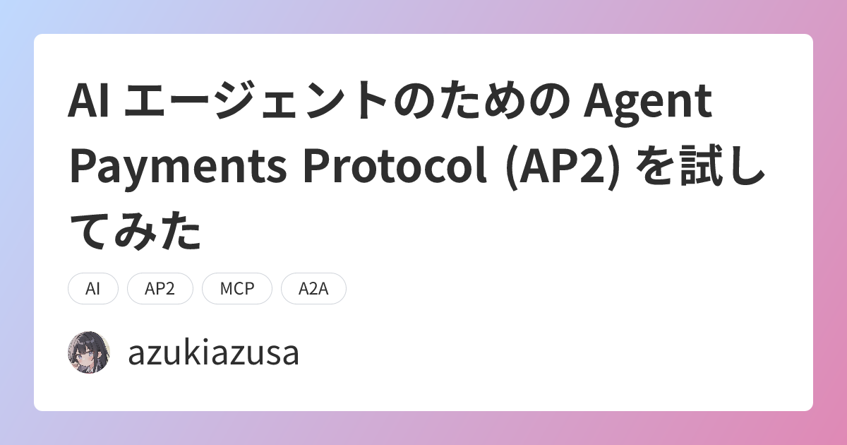 - Agent Payments Protocol (AP2) は AI エージェントがユーザーに代わって安全に支払いを行うことを可能にする新しいプロトコル