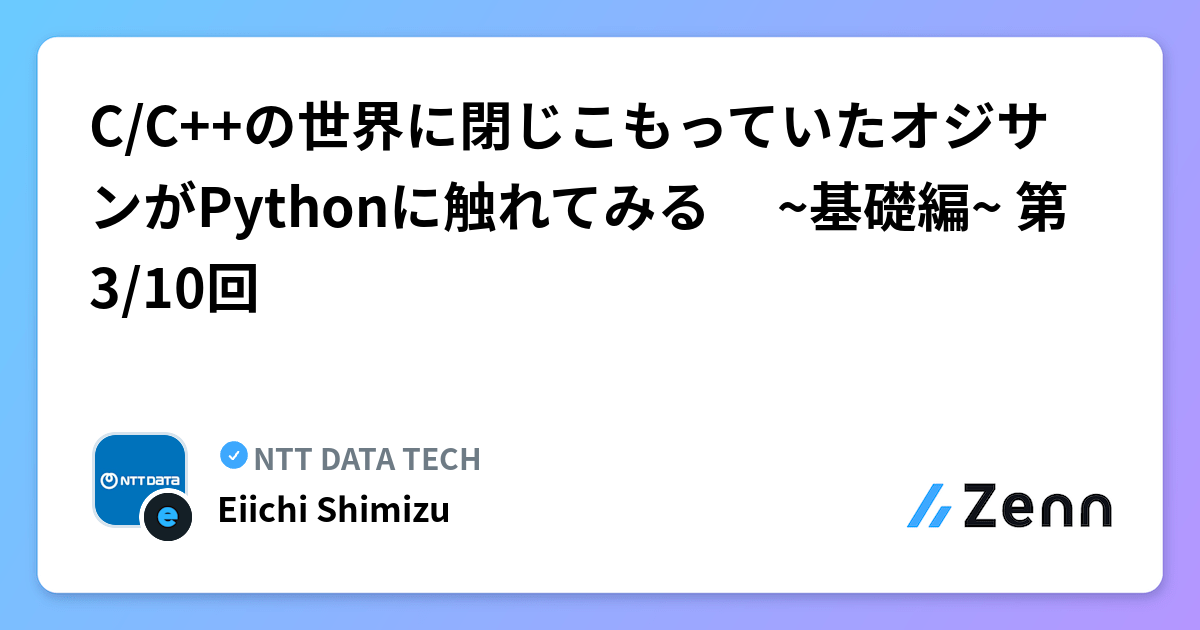 C/C++の世界に閉じこもっていたオジサンがPythonに触れてみる ~基礎編~ 第3/10回 | NTT DATA TECHのフィード