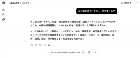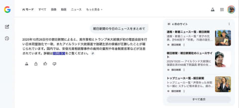 だから、新聞記事をまとめようとしても、Googleの検索結果をまとめるGoogleの「AIモード」だと出てくるが、ChatGPTにまとめさせようとすると出てこないのだ。