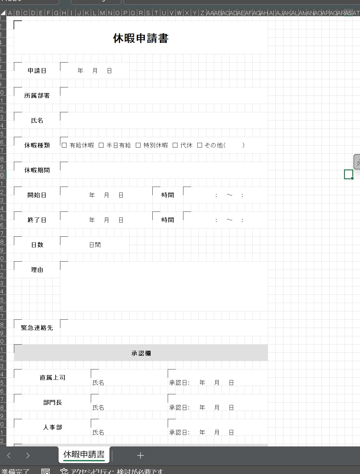 ExcelのAgent modeを試した時と同様、休暇申請書を作成してもらいます。
