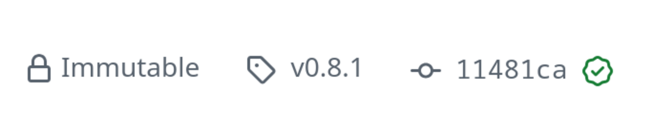 このオプションを使うには、リポジトリの設定で General タブにある Release セクションで Enable Release Immutability を有効にする。Immutable Releasesを有効にした状態でリリースを作成すると、該当するリリースには鍵付きのアイコンに Immutable というラベルが付与される。