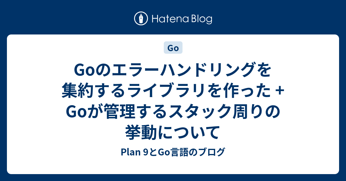 Goのエラーハンドリングを集約するライブラリを作った + Goが管理するスタック周りの挙動について – Plan 9とGo言語のブログ