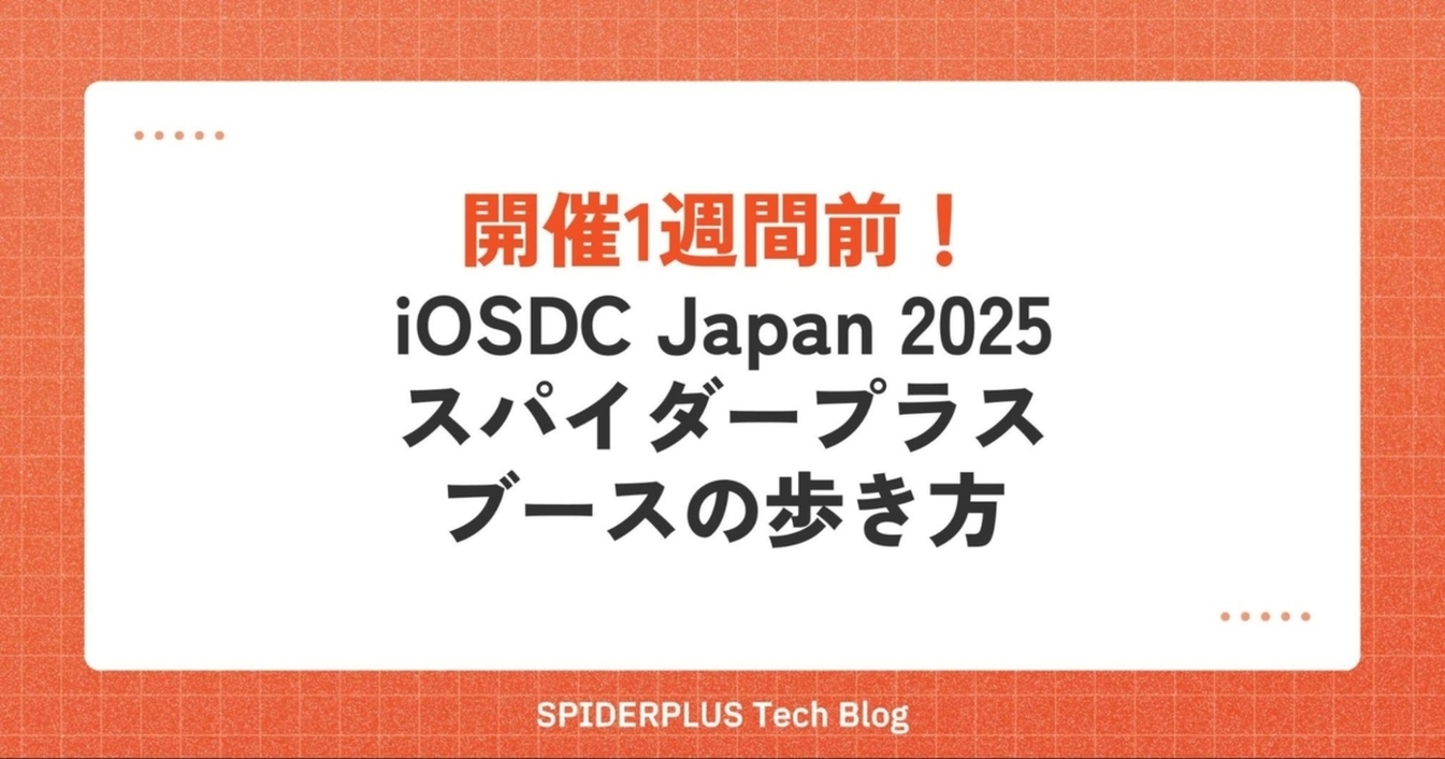 皆様こんにちは!iOSDC Japan 2025開催がいよいよ来週末に迫り、今回はスパイダープラスのブースの推しポイントを紹介してまいります。