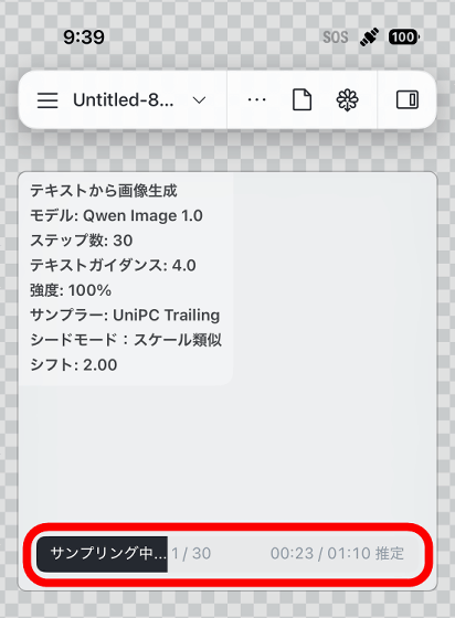 次の日にiPhone 16 Proを確認すると、モデルのダウンロードが完了して画像生成画面が表示されていました。