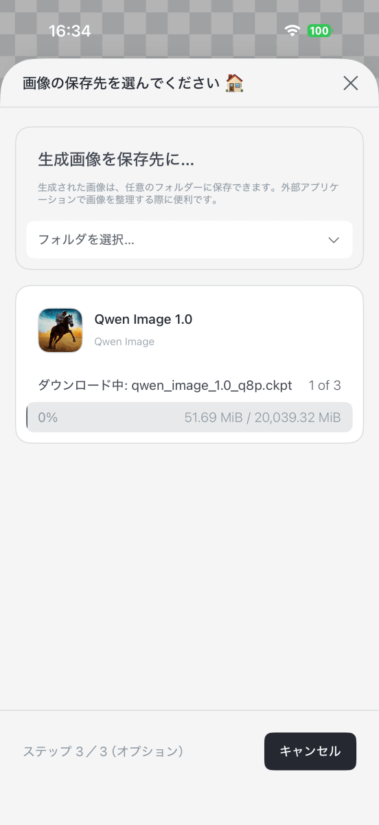 次の日にiPhone 16 Proを確認すると、モデルのダウンロードが完了して画像生成画面が表示されていました。