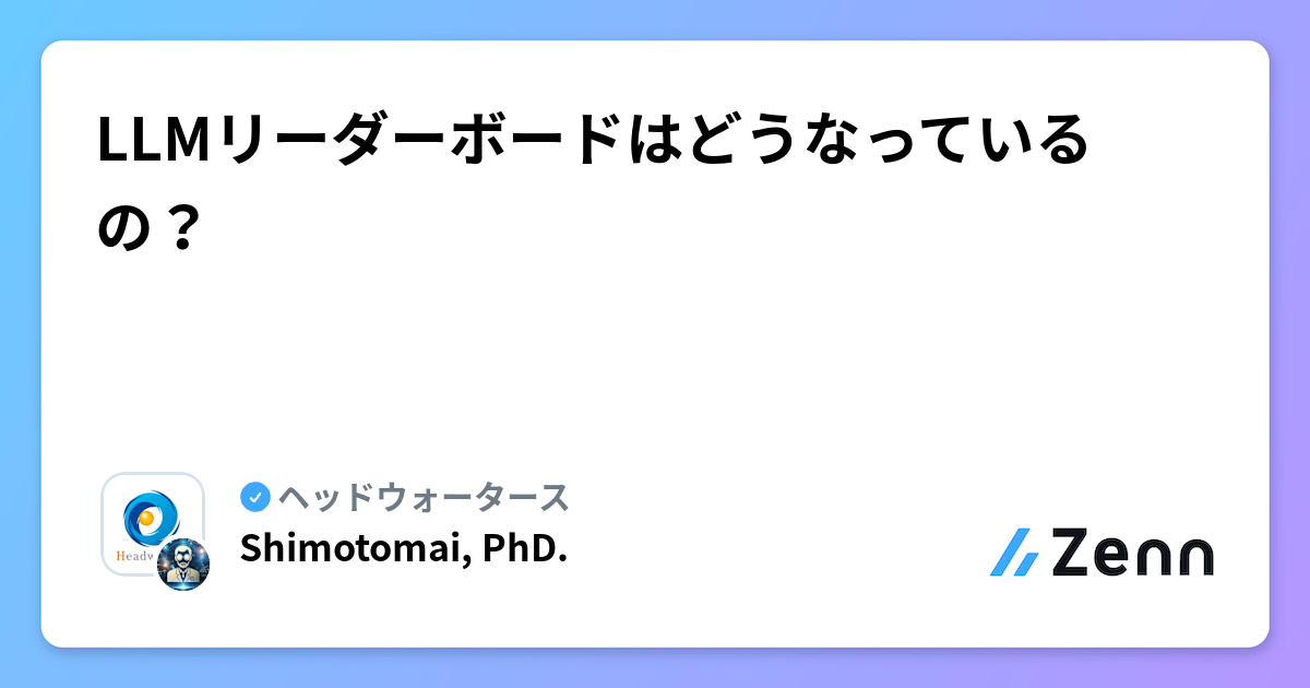 LLMリーダーボードはどうなっているの? | ヘッドウォータースのフィード