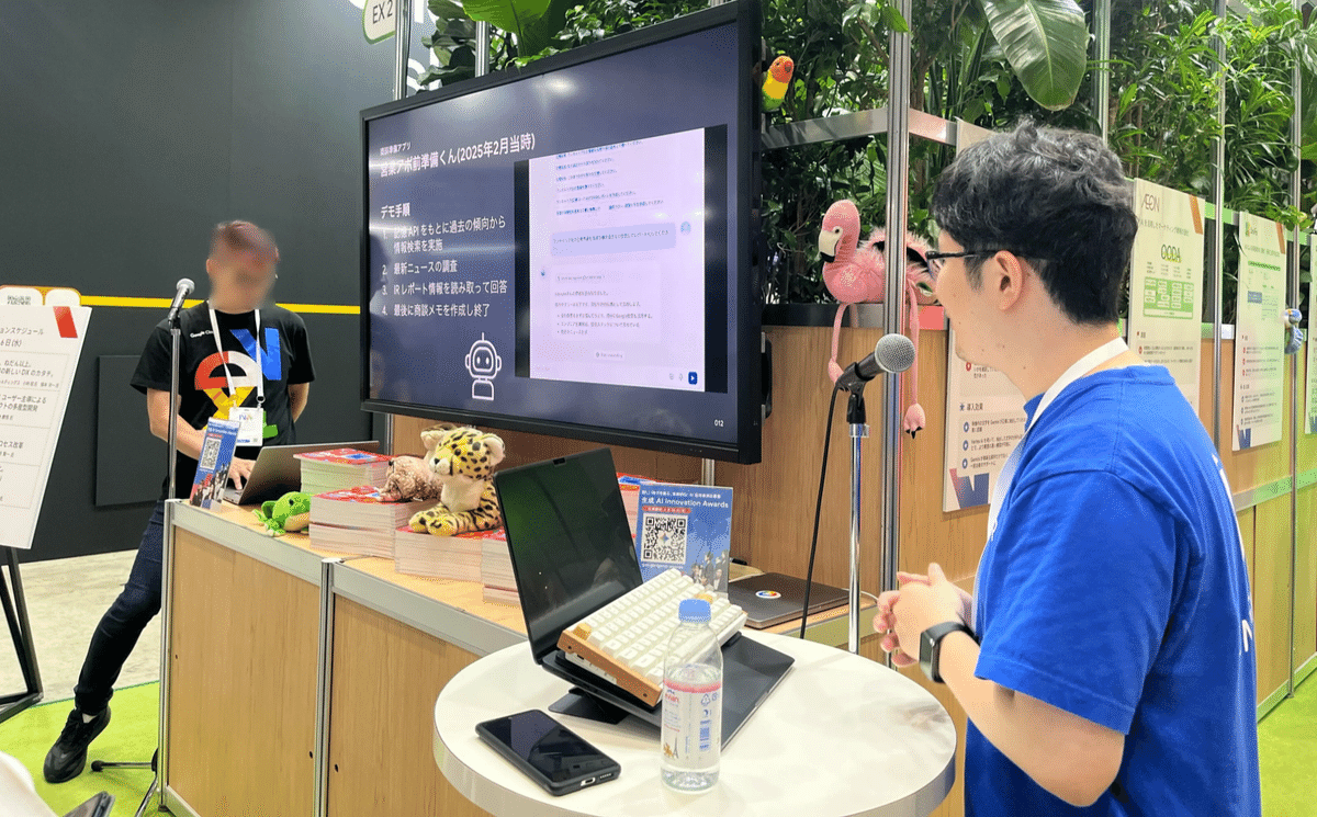 事例の森のミニセッションでは、第3回生成 AI Innovation Awardsでもご紹介したAIツール「営業アポ前準備くん」をテーマに、開発から組織へ定着するまでの道のりについて発表。