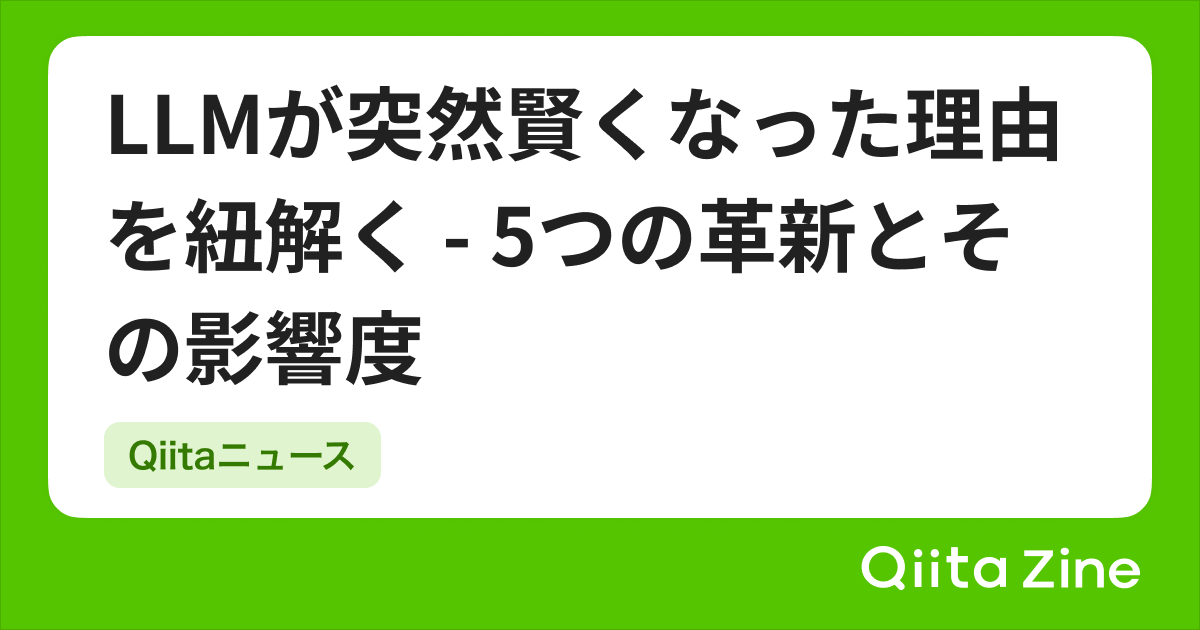 Qiitaニュース | LLMが突然賢くなった理由を紐解く – 5つの革新とその影響度 | Qiita Zine 2025.10.15 Uncategorized 記事のタイトルとURLをコピーする 2025/10/15に配信された Qiitaニュースのバックナンバーです。 Dear great hackers, こんにちは!いつもQiitaをご利用いただきありがとうございます。 先週いいねが多かった投稿ベスト20( […]投稿 Qiitaニュース | LLMが突然賢くなった理由を紐解く – 5つの革新とその影響度 は Qiita Zine に最初に表示されました。 Source link Post Share Hatena LINE RSS feedly Pin it note 苗字変えて前歴を隠しながら偽造した教員免許証を使って全国各地で教員をやり続けたおっさん、ほとんど性欲のヤマトタケルだろ→教員免状だけで採用やってるの... 前の記事 AIコードレビュー『CodeRabbit』をGitLabに導入してみた【体験レビュー】 次の記事 関連記事 Uncategorized 京都から国産ヒューマノイドロボットの再興を目指す“日本連合”、初期プロトタイプ製作へ 2025.10.02 Uncategorized Agents | Playwright 2025.10.08 Uncategorized 「あなたの知らないTechの裏側」特集始まります! | WealthNavi Engineering Blogのフィード 2025.10.31 Uncategorized ツリーインデックスをもつエクセルファイルに関するツール群 – MOTEX TECH BLOG 2025.10.02 コメント 0 コメント 0 トラックバック この記事へのコメントはありません。 トラックバックURL この記事へのトラックバックはありません。 返信をキャンセルする。 名前(例:山田 太郎)( 必須 ) E-MAIL( 必須 ) - 公開されません - URL