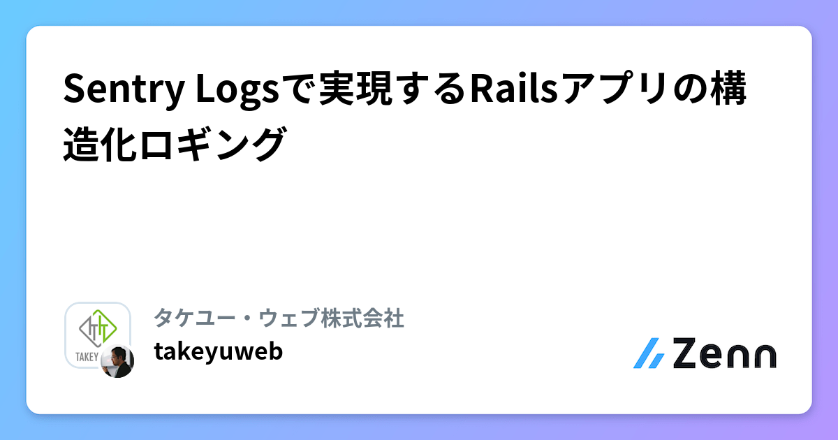 この記事では、Sentry Logs と ActiveSupport::Notifications を組み合わせて、構造化ロギングを実現する方法を解説します。実際のプロジェクトで導入した実装パターンを紹介し、ハマったポイントと解決策も共有します。