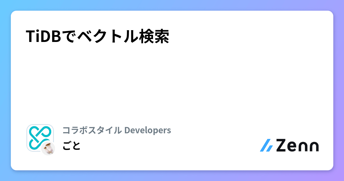 TiDBでベクトル検索 | コラボスタイル Developersのフィード