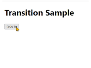 結果、「fade in」ボタンをクリックしても「Completed.」テキストが表示された状態にならない(非表示のまま)