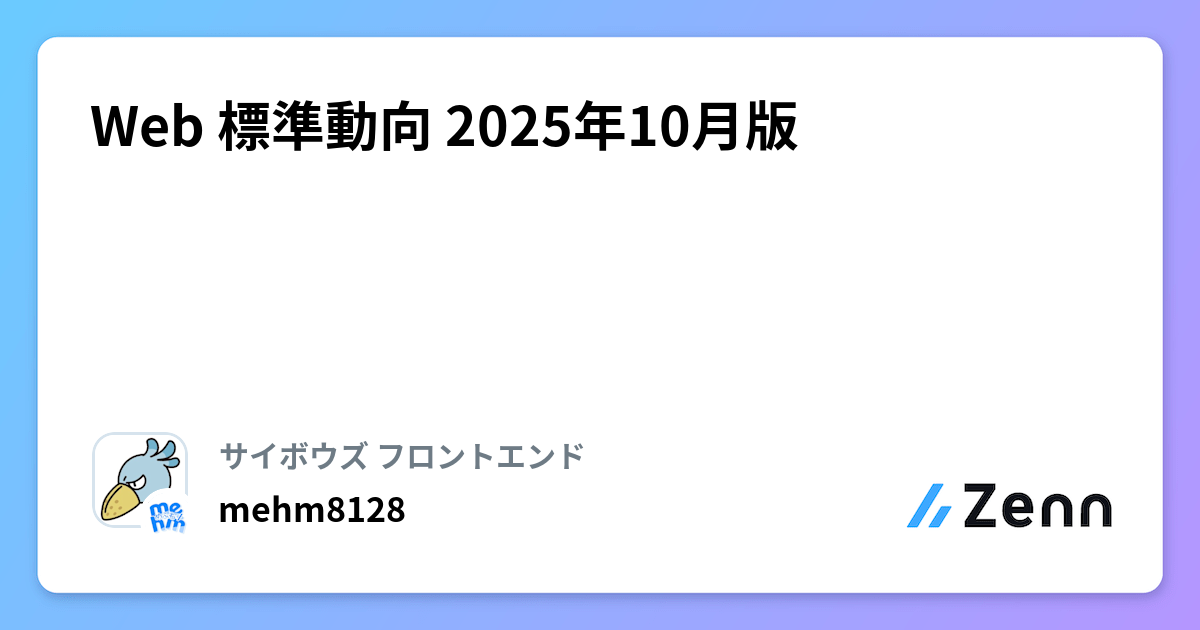 Web 標準動向 2025年10月版 | サイボウズ フロントエンドのフィード